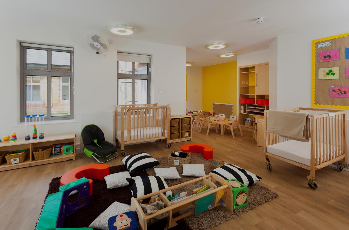 In our comforting baby room, we follow babies' individual routines from home as closely as possible, making the transition from home to nursery easy and reassuring. Your little one will also be able to use our separate sleep room, so they can nap peacefully.